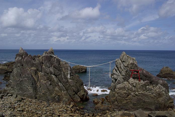 - 天然の奇岩で左が雄龍岩、右が雌龍岩です。種子島とそこに住む人々を造った神様が、姿を変えた岩だという伝説が残っています。この説明はここから。