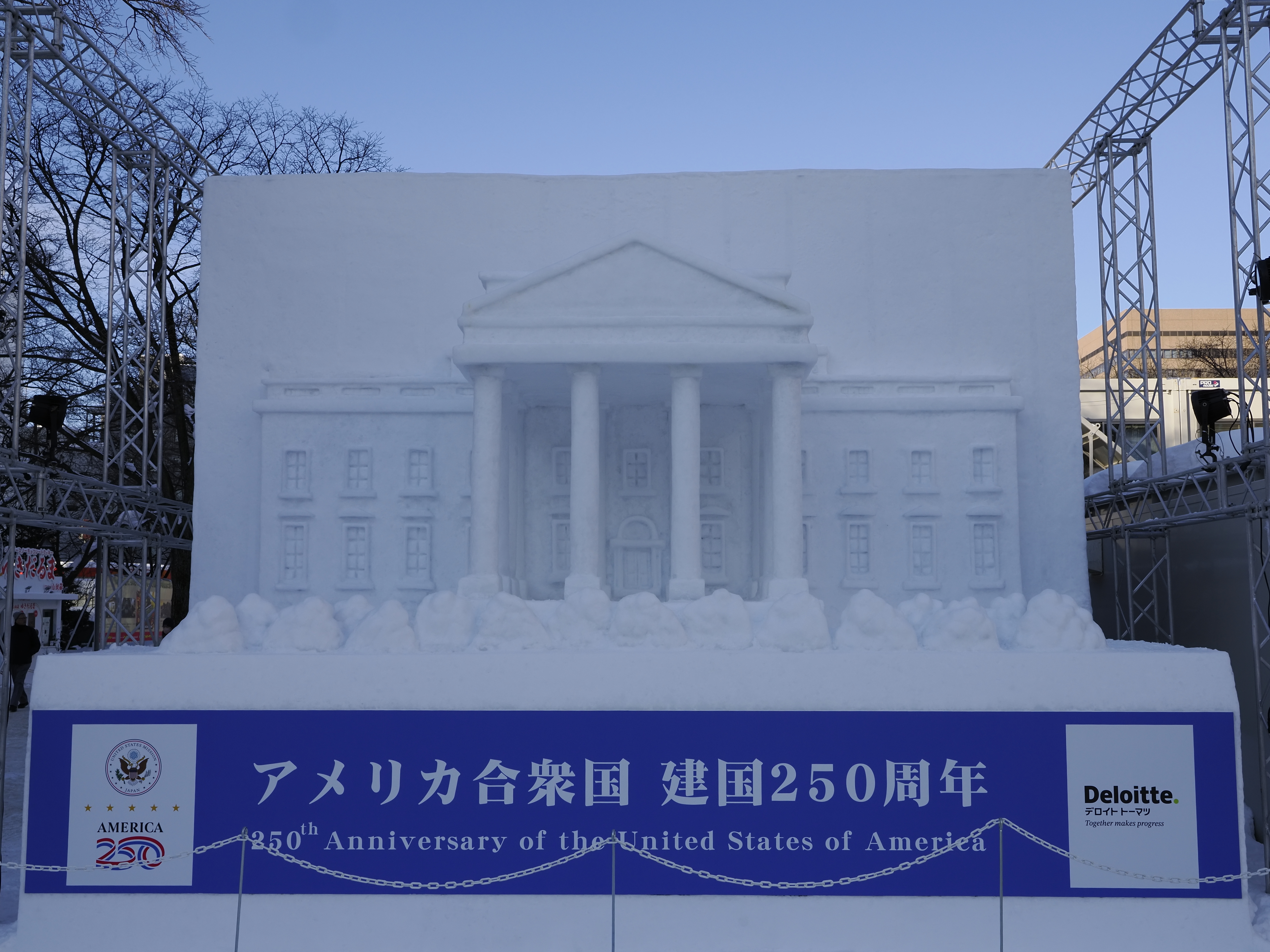 雪像を見て知ったことが一つある。今年はアメリカ建国250周年ということだ。